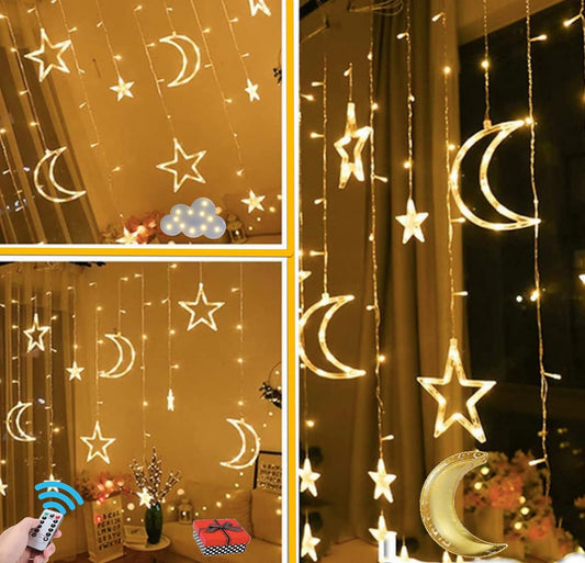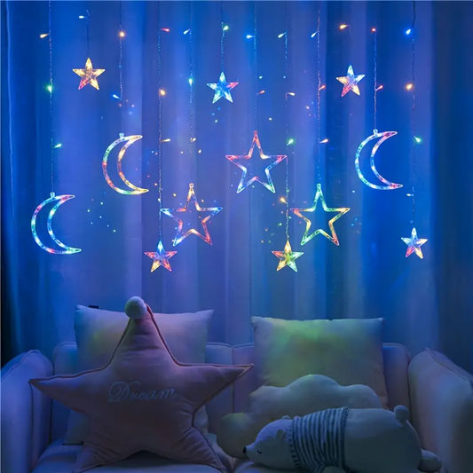 Christmas Ramadan Moon Star Holiday Curtain LED Lights (Solar/Plug) (Colour)