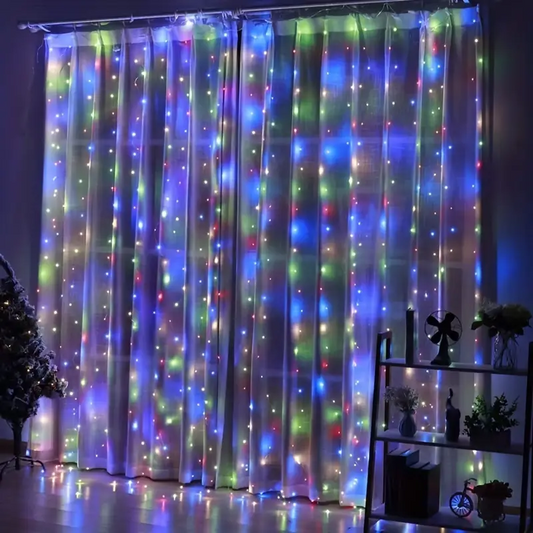 3*3M 300 LED Multicolour Curtain Lights (Solar/Plug)